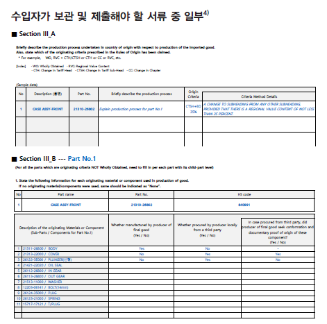 여기에는 수출품에 대한 원가정보와 원재료·부분품 정보 등 생산 관련한 거의 모든 중요 정보가 총망라되어 있다. 인도 개정 관세법에 따라 ‘수입자’가 원산지증명서 뿐만 아니라 원산지 입증 정보까지 요구한다면 큰 낭패가 아닐 수 없다.