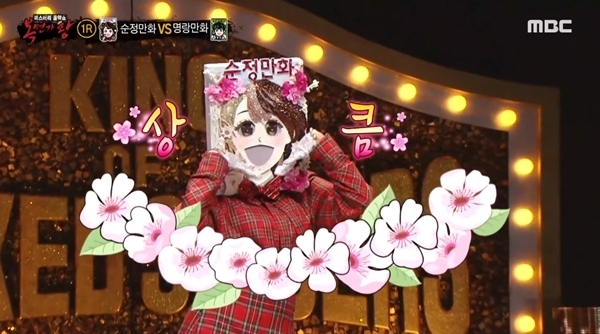 15일 방송된 MBC '복면가왕'에서는 1라운드 첫 대결에서 순정만화와 명랑만화의 대결이 펼쳐졌다. 이들은 악동뮤지션의 '오랜 날 오랜 밤'을 함께 불렀다. 이날 방송에서 패널들은 순정만화의 목소리가 너무 예쁘다고 칭찬했고, 결국 명랑만화를 꺾고 2라운드에 진출했다.