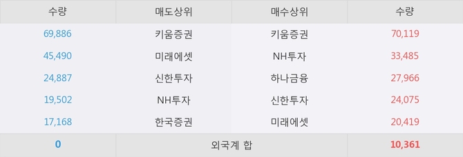 거래원 동향은 NH투자, 하나금융, 미래에셋 등이 매수 상위 목록에 나타나고 있다.