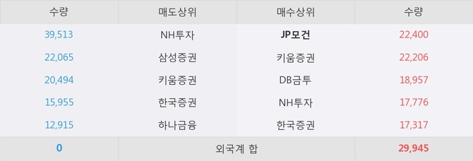 거래원 동향은 JP모건, NH투자가 매수 상위 목록에 나타나고 있다.