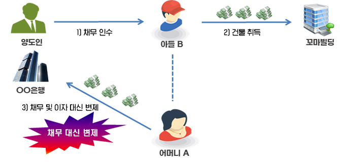 국세청은 아들 B의 연령, 소득, 재산상태 등으로 볼 때 자기 힘으로 빚을 갚을 능력이 될 수 없다고 보았다. 조사 결과 어머니 A가 아들 B 대신 수억대 빚을 갚아주는 방법으로 증여한 사실이 적발됐다.