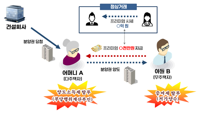 모자는 시세에 맞는 거래였다고 주장했지만, 양도일 전후 3개월 이내 동일 평형, 동일 기준시가의 분양권이 프리미엄 수억원대 거래된 내역이 드러나면서 어머니 A는 저가 양도를 통한 양도소득세 과소 신고, 아들 B는 저가양수에 따른 수억대 증여이익세 탈루 혐의로 나란히 세무조사 대상에 오르게 됐다.
