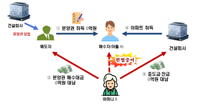 어머니 B의 회사에서 근무하며 소득이 미미한 연소자 A는 고액의 프리미엄이 형성된 고가 아파트 분양권을 취득하고 중도금 및 잔금을 납입했다.