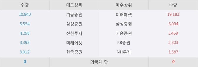 거래원 동향은 미래에셋, 삼성증권, NH투자 등이 매수 상위 목록에 나타나고 있다.
