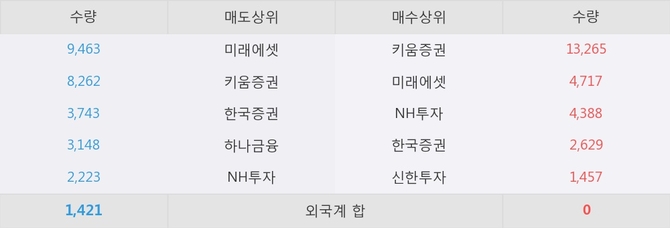 거래원 동향은 미래에셋, NH투자 등이 매수 상위 목록에 나타나고 있다.