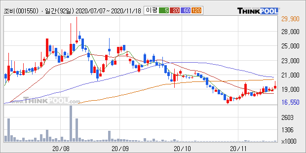 조비는 2019년 매출액 709억원과 영업이익 10억원을 기록했다. 전년대비 매출은 17.2% 상승했고, 영업이익은 -48.7% 하락했다. 이 회사의 매출액 증감률과 영업이익 증감률은 각각 코스피 상위 17%, 하위 22%에 해당된다.