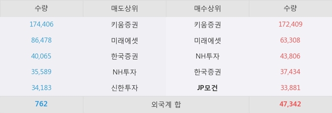 거래원 동향은 JP모건, 미래에셋, NH투자 등이 매수 상위 목록에 나타나고 있다.