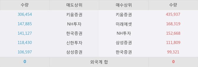 거래원 동향은 미래에셋, NH투자, 삼성증권 등이 매수 상위 목록에 나타나고 있다.