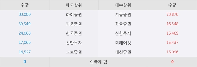 이 시각 주요 거래원은 미래에셋, 키움증권, 한국증권 등이 매수 상위 창구에 자리하고 있다.