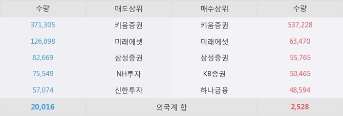 거래원 동향은 미래에셋, 삼성증권, 하나금융 등이 매수 상위 목록에 나타나고 있다.