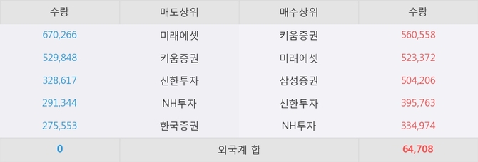 거래원 동향은 미래에셋, 삼성증권, NH투자 등이 매수 상위 목록에 나타나고 있다.