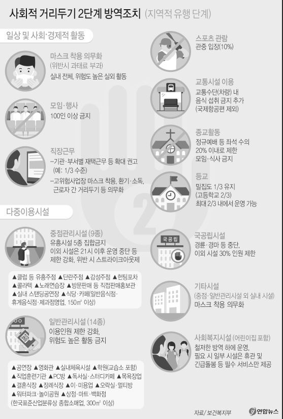 ◇ 거리두기 2단계 무엇이 달라지나…"강력한 방역 메시지, 사적 모임 통한 발생 축소 기대"