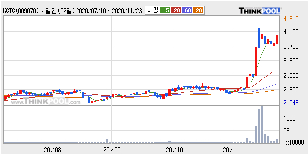 KCTC의 2019년 매출액은 전년대비 11.4% 늘어난 4462억원이고, 영업이익 또한 전년대비 27.1% 늘어난 190억원을 기록했다. 이 회사의 매출액 증감률과 영업이익 증감률은 각각 코스피 상위 23%, 상위 35%에 해당된다.