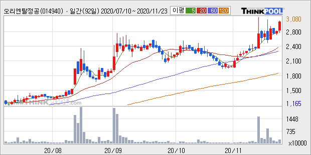 오리엔탈정공은 2019년 매출액 1301억원과 영업이익 53억원을 기록했다. 전년대비 매출은 67.9% 상승했고, 영업이익은 흑자전환했다. 이 회사의 매출액 증감률과 영업이익 증감률은 각각 코스닥 상위 6%, 상위 4%에 해당된다.