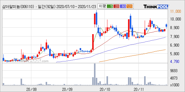 [그래프]삼아알미늄 일봉 차트