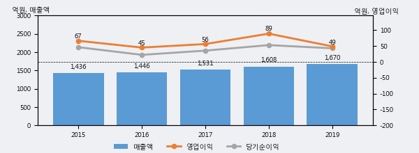 최근 3년간의 실적을 살펴보면 안정적 성장세를 보이고 있다. 최근 3년간 매출로 볼 때 매년 꾸준히 증가하고 있다. 다만 최근에 그 증가폭이 다소 감소하고 있다.