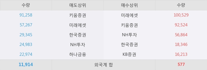 거래원 동향은 미래에셋, NH투자 등이 매수 상위 목록에 나타나고 있다.