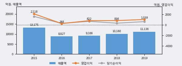 최근 3년간의 실적을 살펴보면 안정적 성장세를 보이고 있다. 최근 3년간 매출로 볼 때 매년 증가하고 있다. 다만 최근에 그 증가폭이 다소 감소하고 있다.