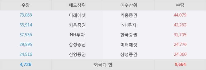 거래원 동향은 NH투자, 미래에셋, 삼성증권 등이 매수 상위 목록에 나타나고 있다.