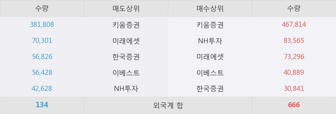 거래원 동향은 NH투자, 미래에셋 등이 매수 상위 목록에 나타나고 있다.