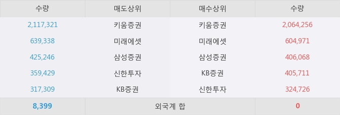 거래원 동향은 미래에셋, 삼성증권 등이 매수 상위 목록에 나타나고 있다.