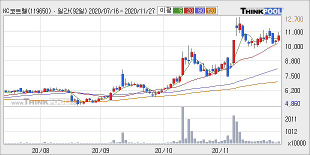 KC코트렐의 2019년 매출액은 3006억으로 전년대비 65.1% 상승했고, 영업이익 또한 85억으로 전년대비 127.3% 상승했다. 이 회사의 매출액 증감률과 영업이익 증감률은 각각 코스피 상위 4%, 상위 11%에 해당된다.