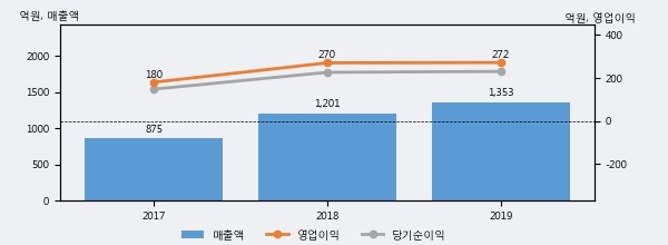 최근 실적을 살펴보면 2019년 매출액이 최근 3년 중 가장 높은 실적을 기록했음을 알 수 있다. 이전 최고 실적이었던 2018년 보다도 12.7%(152억 2천만원) 늘어난 것으로 나타났다.