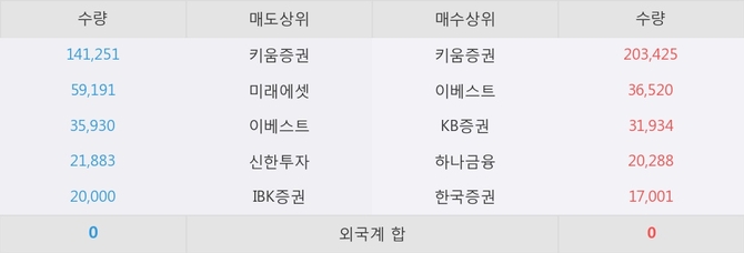 아직까지 외국계 증권사 창구를 통한 매매는 발생하지 않고 있다. 그리고 이 시간 이베스트가 매수창구상위에 올라있는 종목은 이 종목 이외에도 티로보틱스, 하이제4호스팩 등이 있다.
