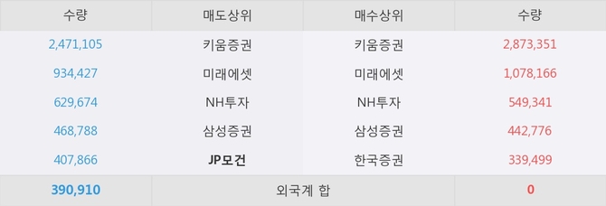 거래원 동향은 미래에셋, NH투자, 삼성증권 등이 매수 상위 목록에 나타나고 있다. 한편, 매도 창구 상위에는 JP모건이 눈에 띄고 있다.