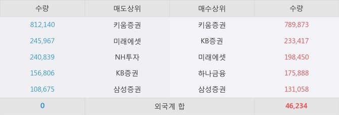 거래원 동향은 미래에셋, 하나금융, 삼성증권 등이 매수 상위 목록에 나타나고 있다.