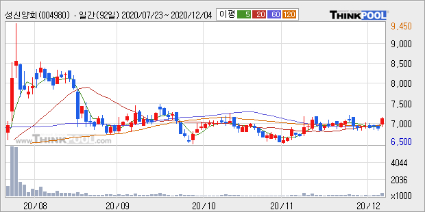 성신양회의 2019년 매출액은 전년대비 2.8% 늘어난 7074억원이고, 영업이익은 전년대비 -30.3% 줄어든 208억원을 기록했다. 이 회사의 매출액 증감률과 영업이익 증감률은 각각 코스피 상위 46%, 하위 29%에 해당된다.