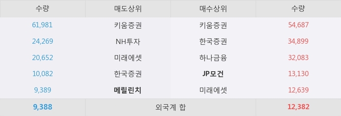 거래원 동향은 JP모건, 하나금융, 미래에셋 등이 매수 상위 목록에 나타나고 있다. 한편, 매도 창구 상위에는 메릴린치가 눈에 띄고 있다.