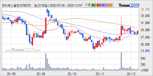 유비쿼스홀딩스는 2019년 매출액 1124억원과 영업이익 137억원을 기록했다. 전년대비 매출은 30.4% 상승했고, 영업이익은 -21.4% 하락했다. 이 회사의 매출액 증감률과 영업이익 증감률은 각각 코스닥 상위 17%, 하위 39%에 해당된다.