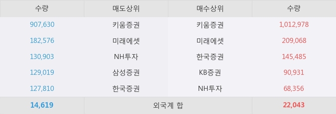 거래원 동향은 미래에셋, NH투자 등이 매수 상위 목록에 나타나고 있다.
