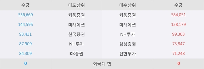 거래원 동향은 미래에셋, NH투자, 삼성증권 등이 매수 상위 목록에 나타나고 있다.