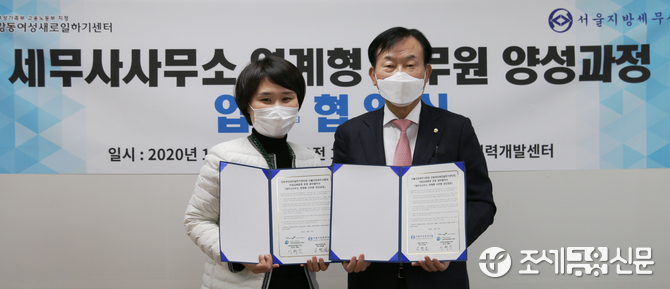 (조세금융신문=이지한 기자) 서울지방세무사회(회장 김완일)는 강동여성새로일하기센터(센터장 이혜진)와 “전문기술 훈련 운영 업무협약( 세무사사무소 연계형 사무원 양성과정”을 체결했다.