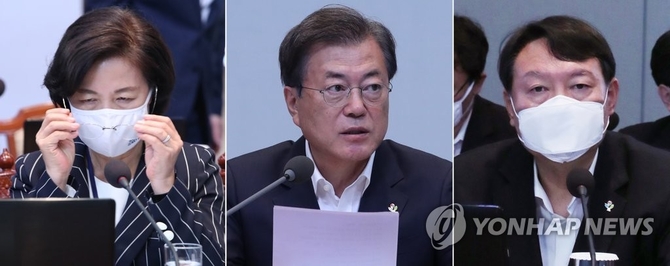 문 대통령은 "검찰총장 징계라는 초유의 사태에 이르게 된 것에 대해 임명권자로서 무겁게 받아들인다"며 "검찰이 바로 서는 계기가 되길 바란다. 법무부와 검찰의 새로운 출발을 기대한다"고 말했다.