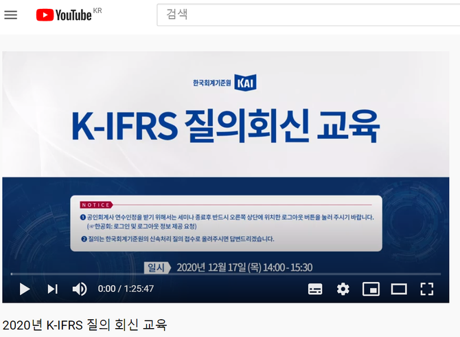 (조세금융신문=고승주 기자) 한국회계기준원이 K-IFRS 질의회신 교육 영상을 홈페이지와 유튜브를 통해 공유했다고 21일 밝혔다.