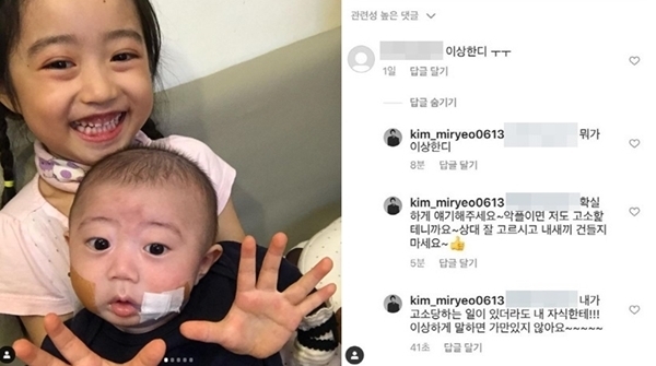 한편, 지난 6월 김미려는 둘째 아들에게 "이상하다"고 댓글을 남긴 누리꾼에게 "뭐가 이상하냐. 확실히 이야기 해달라"며 "악플이면 저도 고소하겠다. 상대 잘 고르시고 내새끼 건들지 말라"고 말했다.