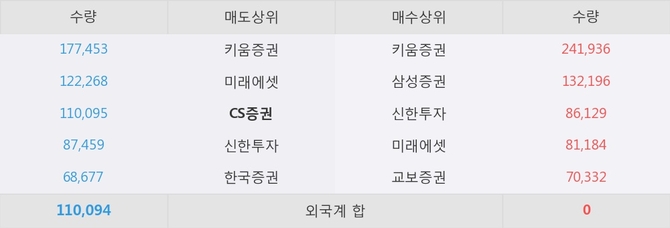 거래원 동향은 삼성증권, 미래에셋 등이 매수 상위 목록에 나타나고 있다. 한편, 매도 창구 상위에는 CS증권이 눈에 띄고 있다.