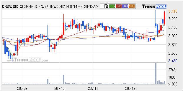 다믈멀티미디어는 2019년 매출액 131억원과 영업이익 10억원을 기록했다. 전년대비 매출은 18.1% 상승했고, 영업이익은 흑자전환했다. 이 회사의 매출액 증감률과 영업이익 증감률은 각각 코스닥 상위 27%, 상위 13%에 해당된다.