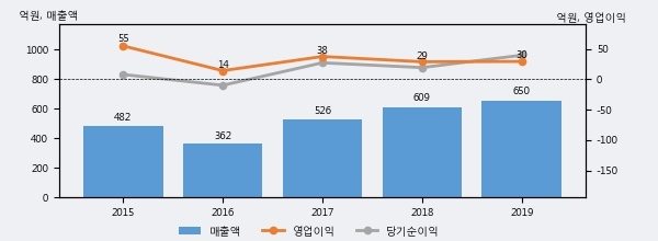 최근 3년간의 실적을 살펴보면 안정적 성장세를 보이고 있다. 최근 3년간 매출로 볼 때 매년 증가하고 있다. 다만 최근에 그 증가폭이 다소 감소하고 있다.