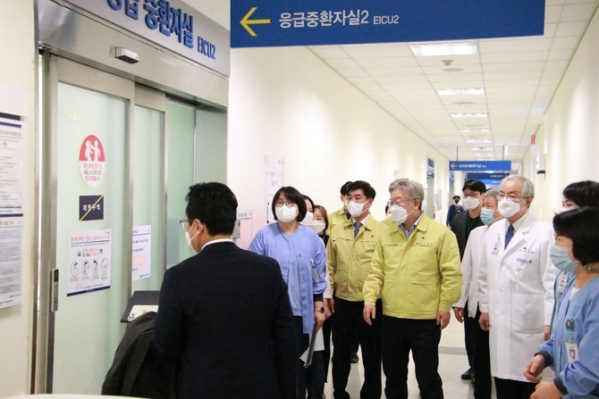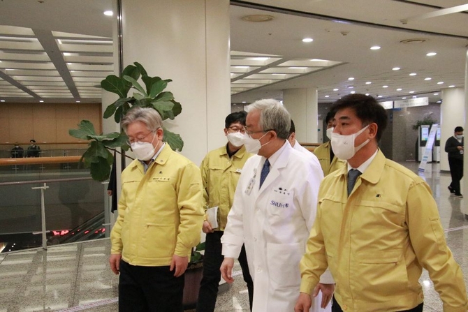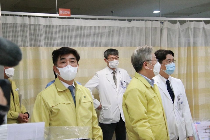 (조세금융신문=이정욱 기자) 김병욱 의원(더불어민주당, 경기 성남시 분당구을, 재선)은 4일 저녁 4시께 이재명 경기도지사와 함께 코로나19 중증환자를 위한 병상을 제공해 준 것에 대한 감사 및 의료진들에 대한 격려 차 분당 서울대병원을 방문했다.
