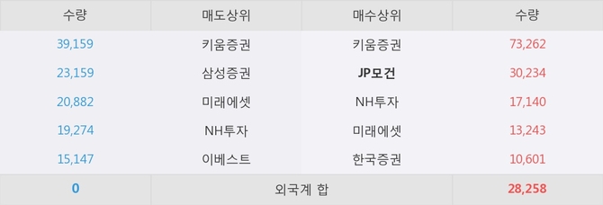 거래원 동향은 JP모건, NH투자, 미래에셋 등이 매수 상위 목록에 나타나고 있다.
