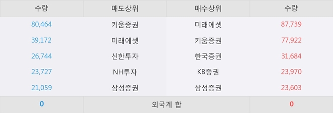 아직까지 외국계 증권사 창구를 통한 매매는 발생하지 않고 있다. 그리고 이 시간 키움증권이 매수창구상위에 올라있는 종목은 이 종목 이외에도 스타플렉스, TIGER 유로스탁스배당30 등이 있다.