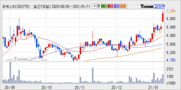 유에스티는 2019년 매출액 524억원과 영업이익 38억원을 기록했다. 전년대비 매출은 5.6%, 영업이익은 11.1% 각각 상승했다. 이 회사의 매출액 증감률과 영업이익 증감률은 각각 코스닥 상위 50%, 상위 43%에 해당된다.