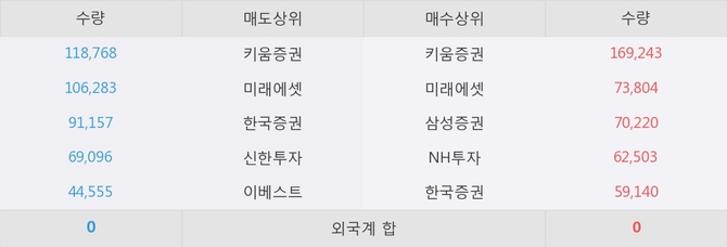 거래원 동향은 미래에셋, 삼성증권, NH투자 등이 매수 상위 목록에 나타나고 있다.