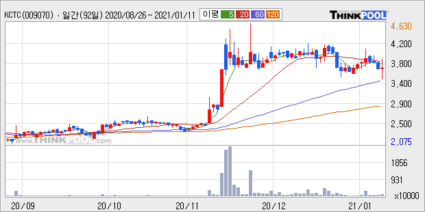 KCTC은 2019년 매출액 4462억원과 영업이익 190억원을 기록했다. 전년대비 매출은 11.4%, 영업이익은 27.1% 각각 상승했다. 이 회사의 매출액 증감률과 영업이익 증감률은 각각 코스피 상위 23%, 상위 35%에 해당된다.