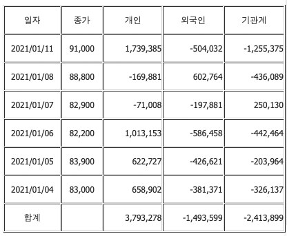 이후 12월 초에 주가가 7만원을 돌파하고 나서는 개인 매수가 몰리며 주가 강세 흐름이 이어졌다.