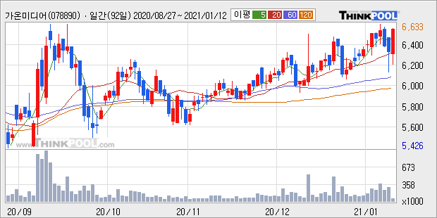 가온미디어의 2019년 매출액은 전년대비 -1.4% 줄어든 6010억원이고, 영업이익은 전년대비 211.1% 늘어난 291억원을 기록했다. 이 회사의 매출액 증감률과 영업이익 증감률은 각각 코스닥 하위 36%, 상위 9%에 해당된다.